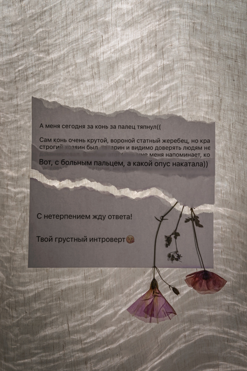 Dry leaves from the places where we live, between the pages of the books that we would love to share with each other, music as an attempt to show the mood, some correspondence about the main (or not) thing, the time spent together in silence